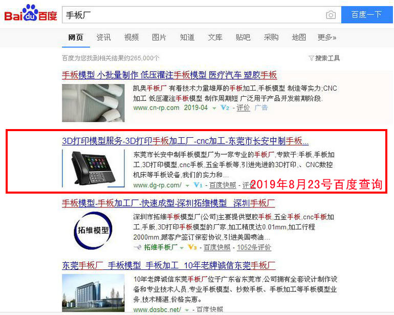 手板廠 : 2019-02-28上線    2019-03-05百度第22(原為第4頁 第6位)    2019-03-13百度第5名    2019-03-19百度第3名    2019-03-25百度第1名